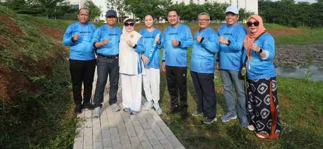 Penasehat DWP Kota Depok, Siti Barkah Hasanah mendampingi Wali Kota Depok Supian Suri menghadiri acara puncak HUT KORPRI dan DWP di Kawasan UIII pada Jumat (28/11/25). (Foto: dide)