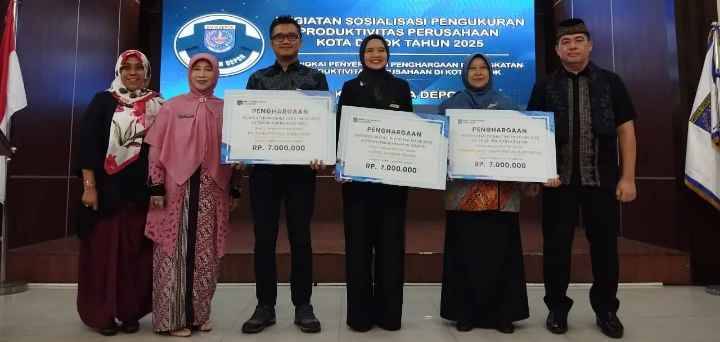 “ebagai bentuk apresiasi daerah, kami memberikan penghargaan berupa uang masing-masing sebesar Rp 7 Juta,” ungkapnya, saat Kegiatan Sosialisasi Pengukuran Produktivitas Perusahaan di Aula Teratai Lantai 1 Gedung Balai Kota Depok, Kamis (27/11/2025).