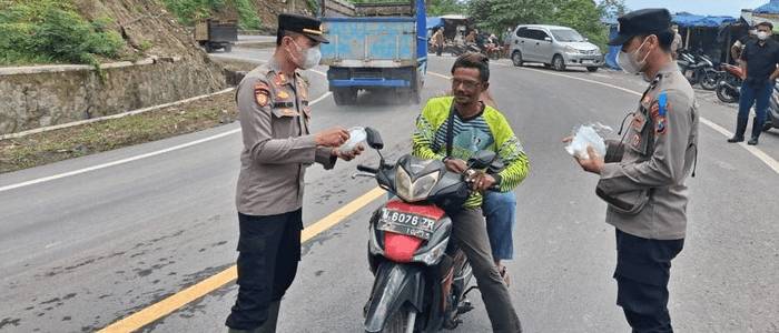 Selain warga, pengguna jalan yang melintas di kawasan tersebut juga menjadi sasaran pembagian masker. Kegiatan itu, dipimpin Kabag Logistik Polres Lumajang AKP Eko Basuki.