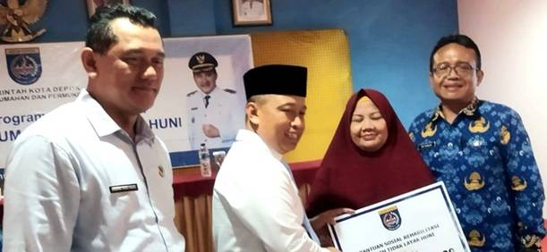 Wali Kota Depok Supian Suri simbolis menyerahkan bansos RTLH kepada warga Beji (foto: ist)